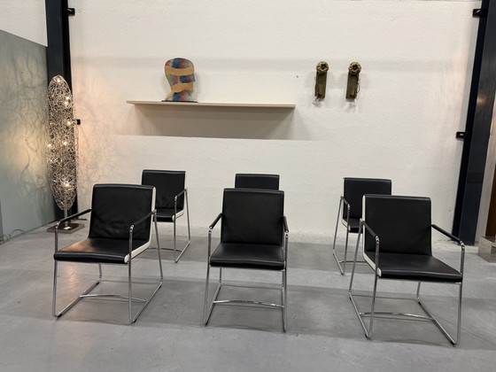 6 sedie da pranzo Leolux Orchid in pelle grigia e nera