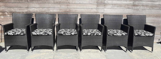 Sedia da pranzo del marchio italiano Varaschin, realizzata in vimini di alta qualità con cuscini originali Varaschin.