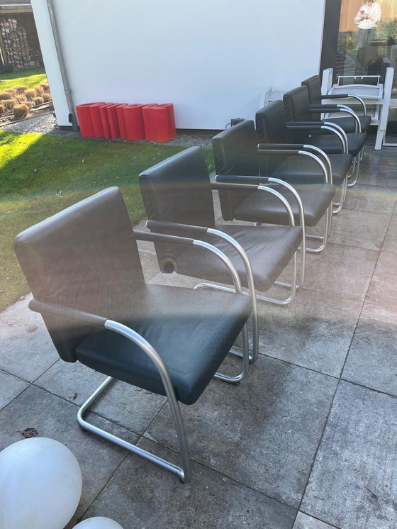 Vi presentiamo un set di sei sedie Vitra Visasoft, progettate dal celebre Antonio Citterio. Queste sedie sono un esempio di eleganza moderna e funzionalità, perfette per qualsiasi ambiente contemporaneo. L'elegante rivestimento in pelle nera abbinato a una robusta struttura in metallo offre comfort e durata, rendendole la scelta ideale sia per l'ufficio che per la casa.