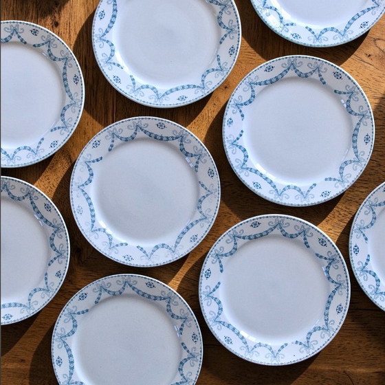 9 grandi piatti piani antichi in pietra di ferro firmati Sarreguemines Juliana