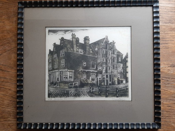 Acquaforte: Ger van Vliet. "Amsterdam Kromboomsloot".