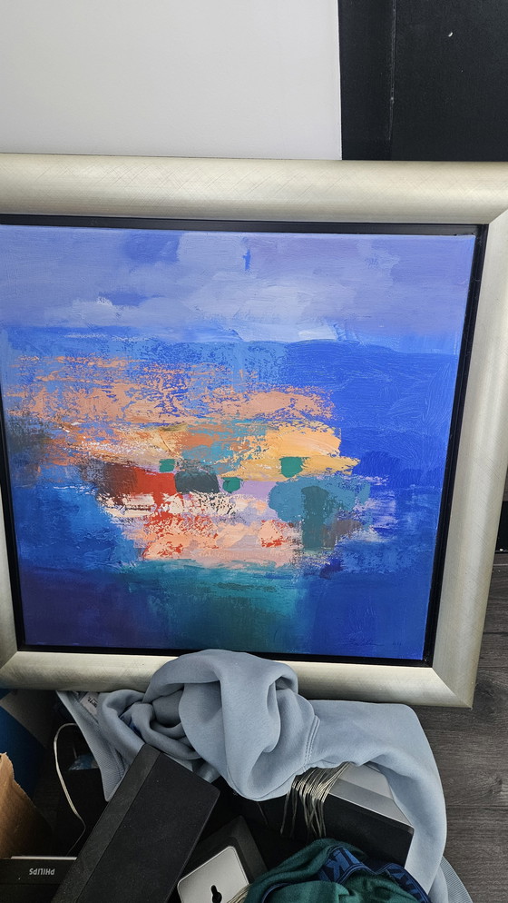 Questo è un dipinto astratto del 2004 di Ahmad Baldin, intitolato "Paesaggio". L'opera è realizzata con colori vivaci come il blu, l'arancione, il verde e il rosso ed è dipinta su tela. Il dipinto è incorniciato ed è in ottime condizioni, senza segni visibili di utilizzo. Un pezzo meraviglioso per gli amanti dell'arte astratta.