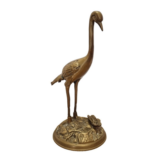 Airone d'epoca in ottone proveniente dalla Francia. Bellissimo airone in ottone fuso degli anni '70. Presenta splendidi dettagli, in particolare il piede. A giudicare dalla statua, sembra che a un certo punto avesse qualcosa nel becco; c'è un piccolo foro. Dimensioni: 11,5 x 25 cm (L x A). N. 6805