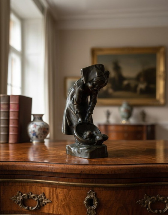 Albert Schultz “La ragazza delle oche” Scultura galvanica (finitura in bronzo) – Strasburgo intorno al 1900