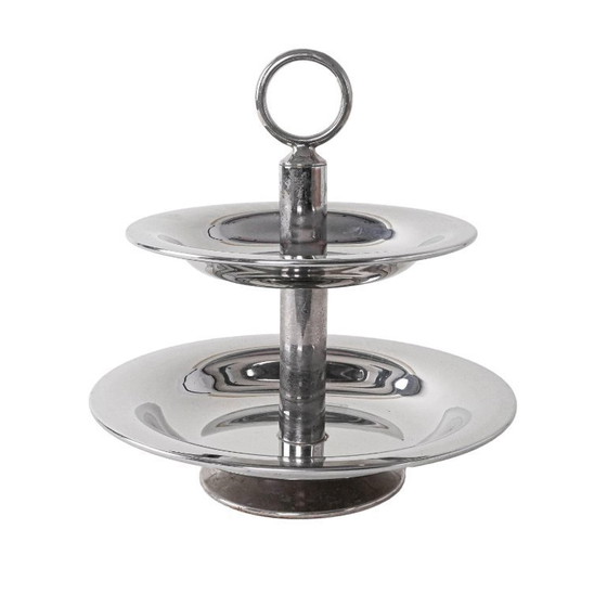 Alzata per torte a due piani in acciaio, design italiano, anni '80, prodotta in Italia