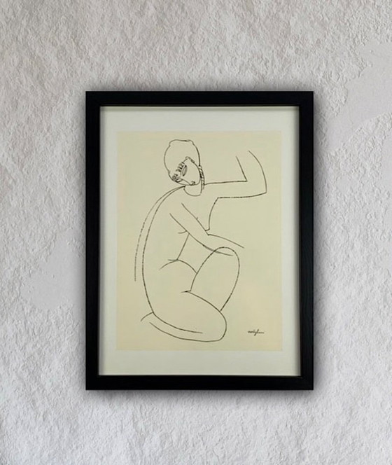 Amedeo Modigiliani (1884-1920): "Studio di nudo 1". Litografia offset in cornice da galleria con vetro acrilico antiri