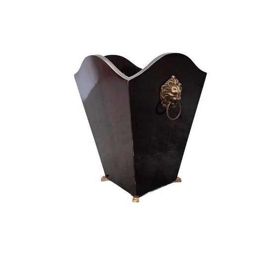 Antico cestino per rifiuti francese in mogano con teste di leone, XIX secolo