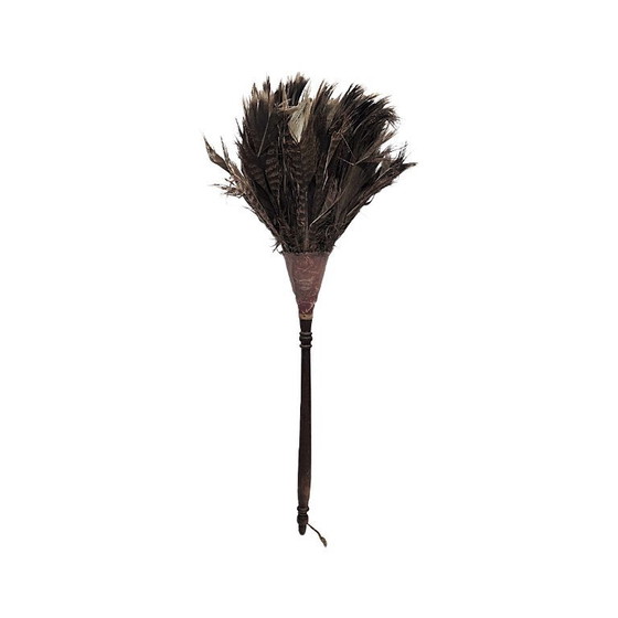 Antico spolverino francese di Parigi, risalente ai primi del '900. Bellissimo e decorativo spolverino in piume di tacchino con timbro di un negozio parigino. È stato usato, quindi alcune piume non sono più intatte.