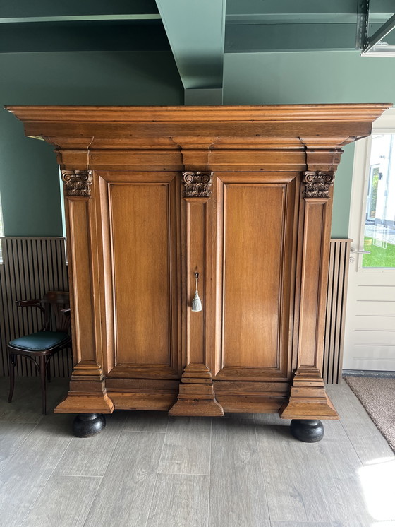 Questo squisito armadio antico è una testimonianza di maestria artigianale ed eleganza senza tempo. Realizzato in legno pregiato, la sua presenza maestosa è esaltata da intricati intagli che ne decorano la facciata, rendendolo un elemento centrale perfetto per qualsiasi interno sofisticato. L'ampio spazio interno dell'armadio offre ampio spazio di archiviazione, ideale per conservare con stile i vostri capi più pregiati o la vostra biancheria.