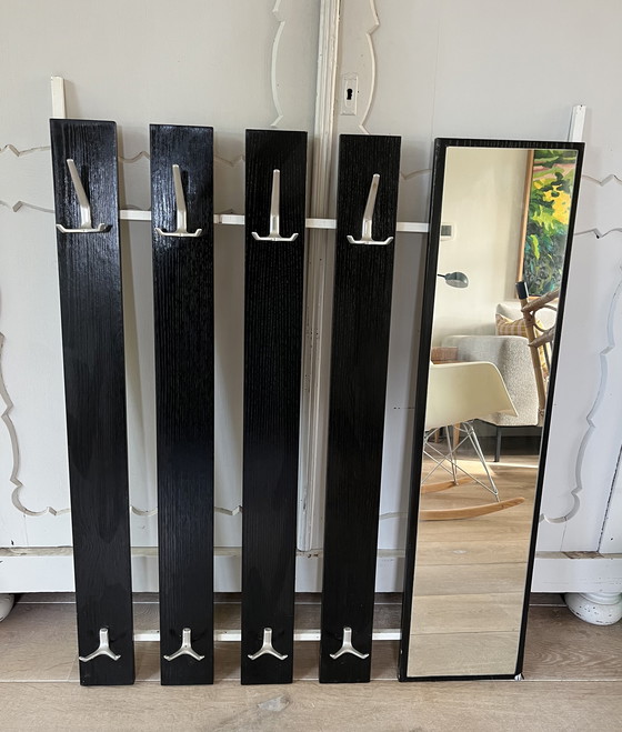 Fai un salto indietro nel tempo con questo splendido appendiabiti anni '60, un perfetto mix di funzionalità e fascino vintage. Questo pezzo presenta un'elegante finitura nera con eleganti ganci argentati, che donano un tocco sofisticato a qualsiasi ingresso o corridoio. Lo specchio integrato aggiunge un tocco pratico, consentendo una rapida occhiata prima di uscire.