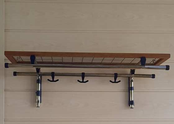 Bellissimo attaccapanni vintage a forma di treno di Isaksson Habo, Svezia. Teak e metallo color oro. In buone condizioni. Lievi segni di usura.