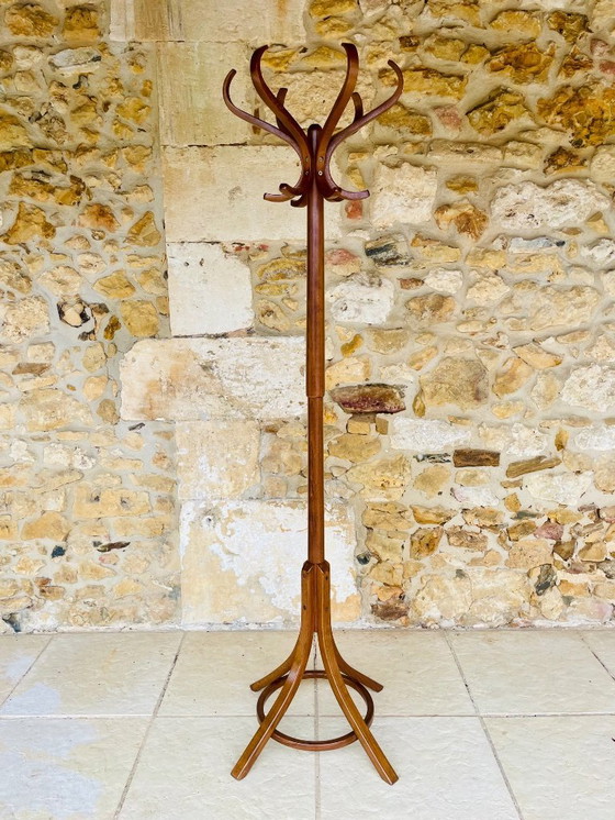 Appendiabiti in piedi, vintage, di metà secolo, in legno di Bentwood di Baumann, anni '60