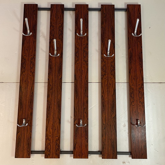 Valorizza il tuo ingresso con questo squisito appendiabiti vintage retrò, un perfetto mix di funzionalità e stile. Realizzato con precisione, questo pezzo presenta ricchi pannelli in legno marrone completati da eleganti ganci in metallo argentato, che conferiscono un tocco sofisticato a qualsiasi arredamento.