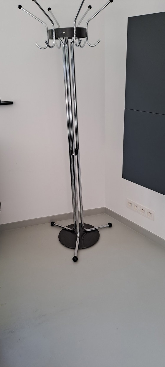 Appendiabiti a stelo Tubax vintage degli anni 1960-70 in acciaio, cromato e nero.