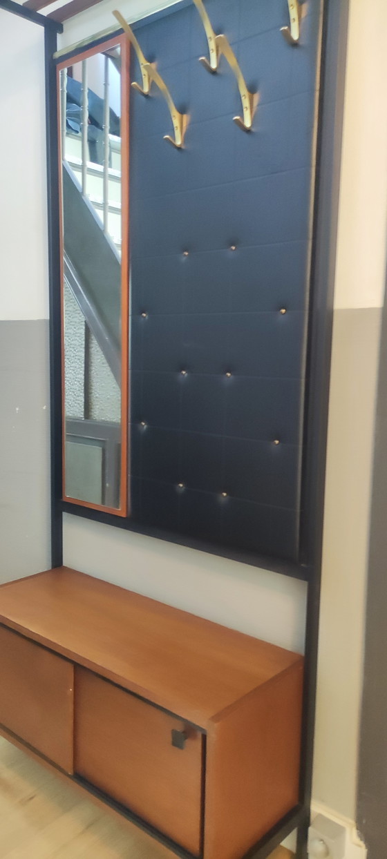 Questo appendiabiti vintage degli anni '70 è un bellissimo complemento d'arredo che unisce funzionalità e stile. Presenta una robusta struttura in legno con ganci in metallo e uno specchio integrato. L'appendiabiti è ideale per appendere cappotti e riporre scarpe o accessori nel mobiletto inferiore. Il design emana un fascino classico che si adatta perfettamente a interni retrò o vintage.