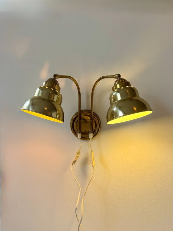 Rara applique doppia in ottone, prodotta in Svezia negli anni '70.