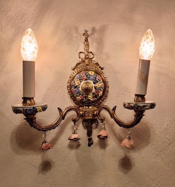 Applique da parete in ceramica e ottone in stile boho spagnolo di metà secolo