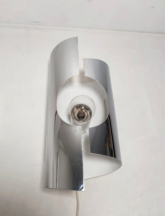 - L'applique presenta un'elegante finitura metallica che cattura l'essenza del design dell'era spaziale, rendendola un'aggiunta straordinaria a qualsiasi interno moderno.