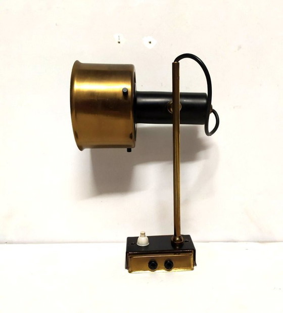 Questa lampada da parete è attribuita a Stilnovo per forma e stile.