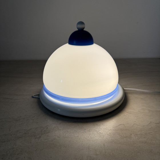 Image 1 of Applique vintage in vetro bianco e blu, anni '70