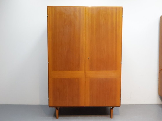 Questo speciale armadio presenta splendidi dettagli, tra cui le gambe in compensato e le maniglie delle ante.