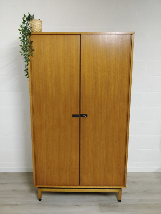 Scoprite il fascino di questo armadio vintage di metà secolo del rinomato marchio MDK. Realizzato in splendida impiallacciatura di teak, questo armadio emana un'eleganza senza tempo che si adatta perfettamente a qualsiasi stanza (dei bambini). Le gambe affusolate e la serratura in metallo nero gli conferiscono una finitura sofisticata e al tempo stesso elegante e funzionale.