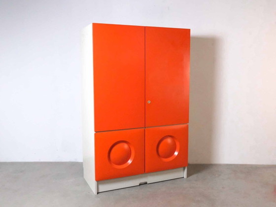 Scopri l'armadio vintage Gwinner Space Age NORO KS110, un capolavoro degli anni '70 che affascina con il suo design sorprendente e la vivace combinazione di colori. Questo armadio è un ottimo esempio di estetica Space Age e porta un tocco di retro-futurismo nella tua casa. Realizzato in legno robusto e plastica resistente, questo armadio offre non solo stile ma anche funzionalità. L'accattivante frontale arancione abbinato ai pannelli laterali bianchi aggiunge un tocco vivace a qualsiasi stanza. Con ampio spazio di archiviazione, l'armadio è ideale per riporre vestiti e altri oggetti personali. Un must per gli appassionati di design Space Age che desiderano dare ai propri interni un carattere unico. Contattaci per maggiori informazioni o per fissare un appuntamento.