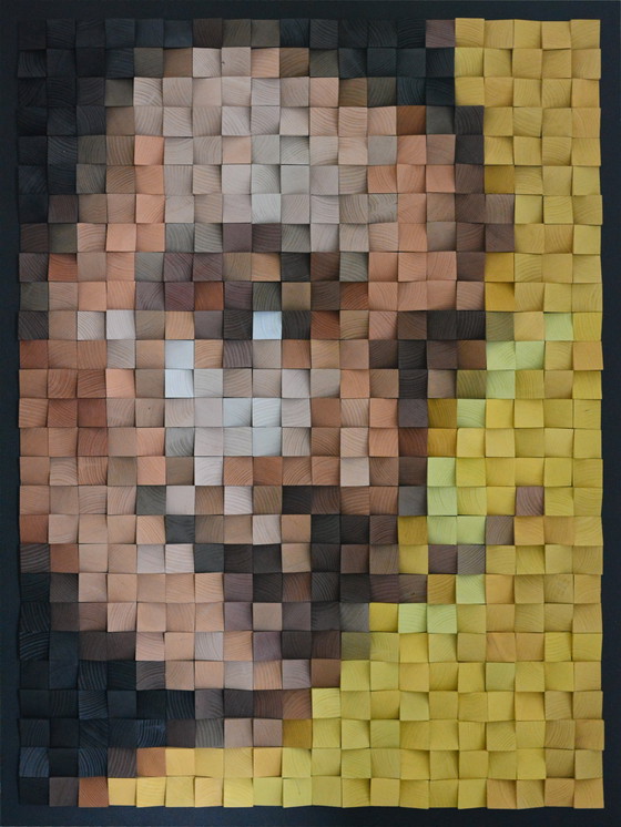 Una versione unica di uno dei dipinti più famosi al mondo: l'Autoritratto di Van Gogh. Il dipinto è realizzato in legno di pino: ogni dettaglio è segato e levigato. Ogni pezzo di legno è dipinto a mano, incollato e verniciato in modo unico. La texture del legno rende ogni opera speciale. Questa è una serie di opere di un artista olandese che crea pixel art dal legno, ispirandosi a capolavori di fama mondiale. Pertanto, ogni dipinto è unico e cambia a seconda dell'illuminazione. Il riconoscimento dei capolavori mondiali si unisce a una tecnologia insolita e alla texture del legno. Materiali: legno, acrilico, vernice, colla.