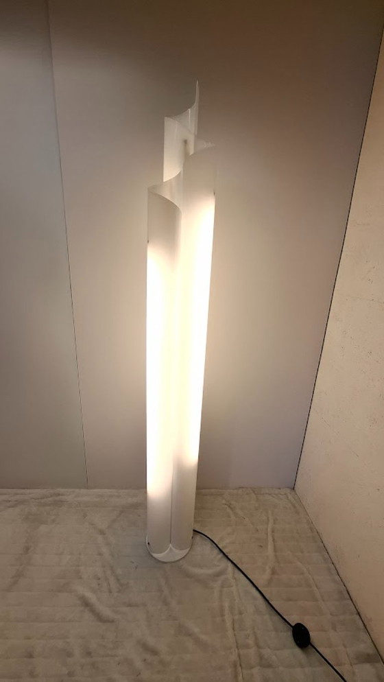 Illumina il tuo spazio con la lampada da terra Artemide Chimera! Questo capolavoro moderno degli anni '60, disegnato da Vico Magistretti, è un vero pezzo forte. L'elegante resina bianca forma un'elegante spirale, proiettando una luce soffusa e avvolgente che si adatta perfettamente a qualsiasi ambiente moderno.
