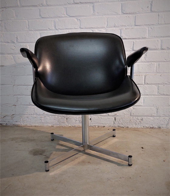 Bellissima poltrona su base cromata con rivestimento in pelle skai. Raro modello con braccioli. Design di Geoffrey Harcourt degli anni '60. Altezza braccioli: 61 cm In buone condizioni vintage. Si prega di osservare attentamente le foto.