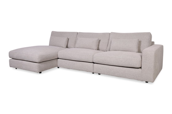 Combinazione di sedute Cross della collezione DMO composta da una poltrona longue (dimensioni 101x168), una poltrona da 1,5 posti (dimensioni 95x108) e un bracciolo destro da 1,5 posti (dimensioni 117x108) / e 3 cuscini anteriori (dimensioni 60x28) / tessuto Sneak Natural 01 Le immagini mostrate sono la rappresentazione reale del prodotto.