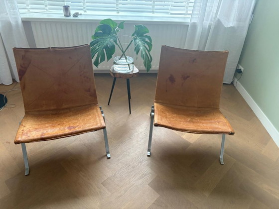 Una rara opportunità di possedere un pezzo iconico del modernismo danese. Questa coppia di sedie vintage PK22, disegnate da Poul Kjærholm e prodotte dal produttore originale (e. Kold christensen), emana un'eleganza senza tempo e un rigore architettonico. Non si tratta di semplici sedie, ma di sculture storiche del design di metà secolo.