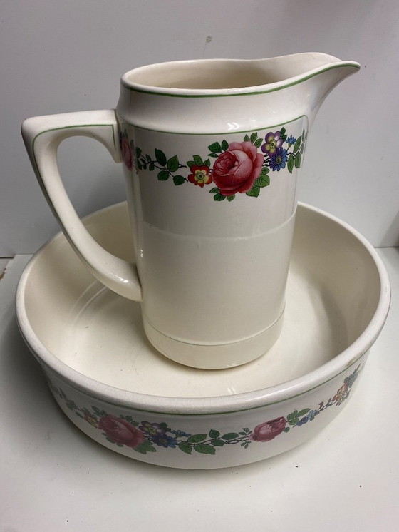 Scopri l'eleganza senza tempo di questo lavabo e bacinella d'epoca Villeroy & Boch. Questo splendido pezzo, con il suo delicato motivo floreale, aggiunge un tocco di fascino classico a qualsiasi ambiente. Perfetto per gli amanti dell'arredamento vintage, questo set trasuda artigianalità e stile.