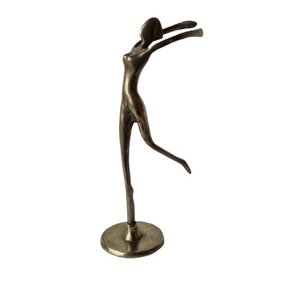 Questa ballerina vintage in ottone è un bellissimo oggetto d'arte decorativa che emana eleganza e movimento. Realizzata in Europa negli anni '80, questa scultura raffigura una graziosa ballerina in una classica posa di danza, realizzata in caldo ottone lucido. Le linee fluide e la forma raffinata conferiscono alla scultura un senso di leggerezza e grazia, nonostante il materiale robusto.