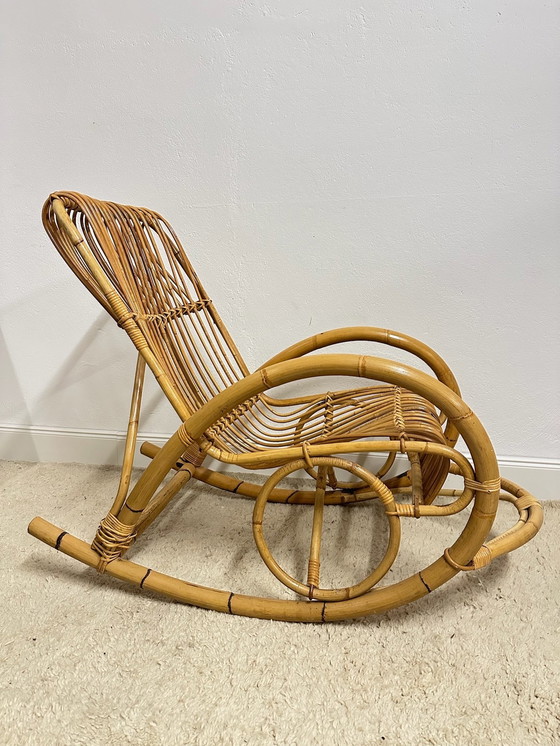 Scopri l'eleganza senza tempo di questa sedia a dondolo in rattan Bambus, una sedia a dondolo vintage che fonde perfettamente forma e funzionalità. Realizzata in rattan e bambù di alta qualità, questa sedia emana un fascino naturale, invitante e sofisticato al tempo stesso.