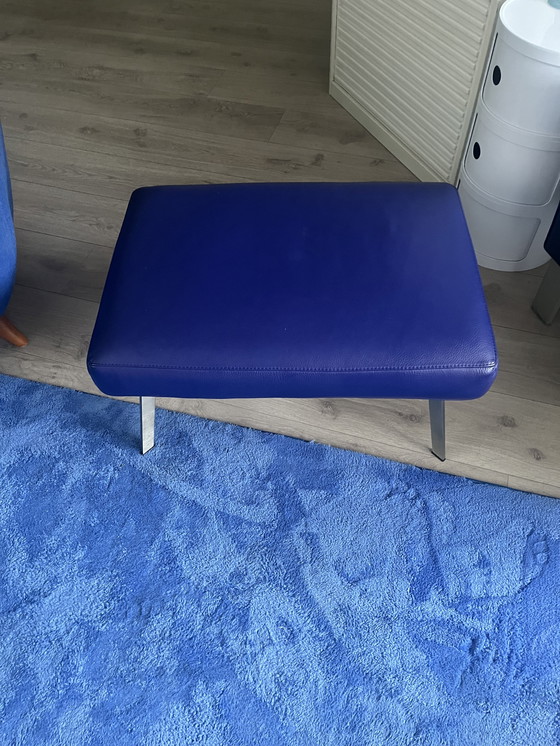 Questo pouf Leolux è un'aggiunta elegante e moderna a qualsiasi spazio abitativo. Rivestito in una splendida pelle blu, offre comfort ed eleganza. Le eleganti gambe in metallo aggiungono un tocco contemporaneo, rendendolo perfetto per gli interni moderni. Ideale per essere utilizzato come poggiapiedi o come seduta aggiuntiva, questo pezzo combina funzionalità e fascino estetico.