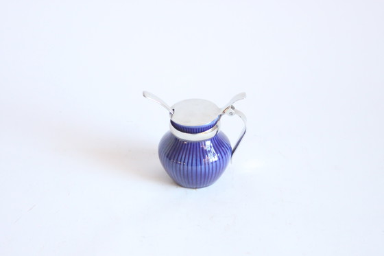 Barattolo di senape e cucchiaio in porcellana Rörstrand, Svezia anni '70