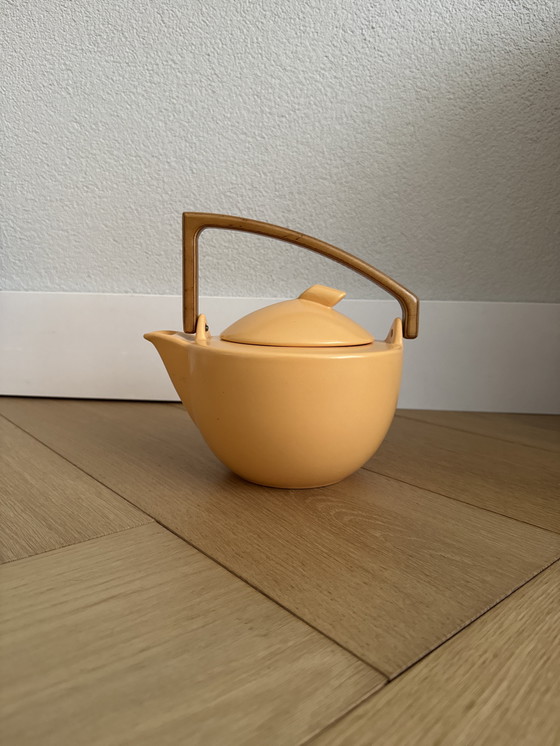 Questa teiera modernista in stile Bauhaus è un bellissimo pezzo che combina funzionalità e design elegante. Il corpo in ceramica di colore arancione vivace è abbinato a un manico in legno che crea un'estetica unica ed elegante. La sua forma minimalista è al tempo stesso pratica ed elegante e la rende un'aggiunta ideale a qualsiasi cucina o collezione moderna. Il design riflette la filosofia Bauhaus di combinare l'arte con il design industriale, garantendo bellezza e utilità. Perfetto per gli amanti del tè e i collezionisti.