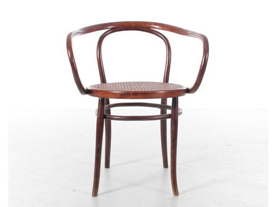 Poltrona Baumann B9/209 detta "Le Corbusier" in legno curvato. Intreccio tradizionale restaurato. Anni '40. H 78; L 63; P 50 cm. Altezza seduta: 48 cm.