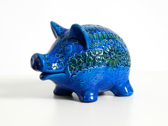 A beautiful, large, decorative 1960s ceramic piggy bank from the Rimini Blu collection.
