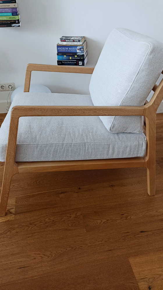 - Rivestita in un tessuto beige neutro, questa poltrona si integra perfettamente in diversi stili di arredamento, offrendo una soluzione di seduta versatile.