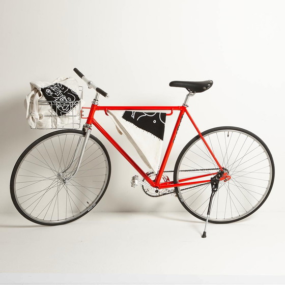 "FUCK BEA-t-CH" è la reinterpretazione di una bici da spiaggia californiana degli anni Settanta, realizzata a partire da un telaio originale Atala recuperato e personalizzato. I dettagli personalizzati che rendono questa bici urbana originale assolutamente unica includono: vernice rossa brillante per il telaio; guarnitura, pedali e manubrio cromati; freno a contropedale (o freno a contropedale); cestino cromato originale recuperato dalla cantina italiana Grigolli Bruno; tubo portasciugamani verniciato di rosso; due adesivi "Fuck Oil" argentati su tubo obliquo e tubo obliquo; manubrio con camera d'aria piatta e nera nastrata. Questa bici unica è venduta dotata di una grande borsa da spiaggia personalizzata e di un telo da mare in tessuto di canapa riciclata con stampa originale. Taglia 56. Tubo orizzontale 54 cm, tubo obliquo 56 cm.