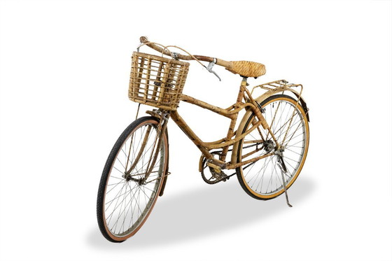 Bicicletta in bambù e rattan. Realizzata a mano negli anni '70.