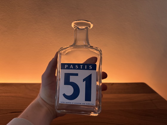 Questa bottiglia di Pastis 51 è perfetta per i collezionisti o come elemento decorativo. Realizzata in vetro trasparente e impreziosita dall'iconica etichetta Pastis 51, aggiunge un tocco di nostalgia a qualsiasi ambiente. Questa bottiglia è in ottime condizioni e pronta per impreziosire i vostri interni.