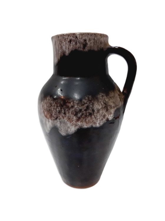 Questa squisita brocca vintage in ceramica smaltata è un esempio di artigianalità ed eleganza senza tempo. Le sue intense tonalità di marrone e nero creano un sorprendente contrasto visivo, rendendola un'aggiunta accattivante a qualsiasi collezione o ambiente decorativo.