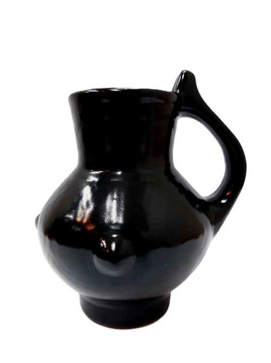 Brocca vintage in argilla smaltata nera da 1 quarto, 17 cm