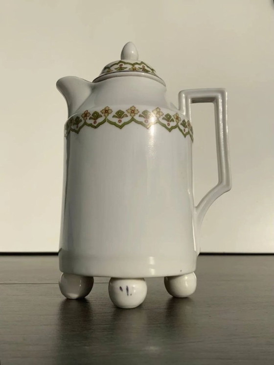 Caffettiera in porcellana Art Déco - Stile "Alt Wien" - Quattro piedini a sfera - c. 1920-1930