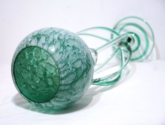Calice monumentale in vetro soffiato a mano da 42 cm di Makora Krosno – Design marmorizzato color smeraldo