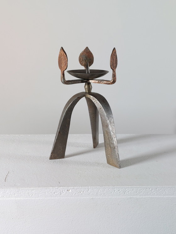 Candeliere artigianale in metallo vintage unico di metà secolo