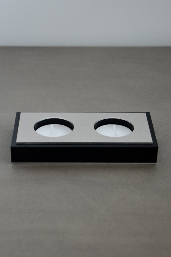 Portacandele in acciaio spazzolato, design Art Déco/Bauhaus: